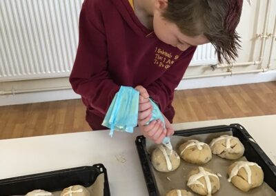 We held a non-uniform day and with our cake raffle the school raised £114.00 for Comic Relief. The children spent the day in their Houses baking hot cross buns. The children designed their own flavours and work together to produce an Easter themed display. Mrs Harrison and Mrs Park were the lucky judges. It was a very close competition where Willow and Hazel came joint first.